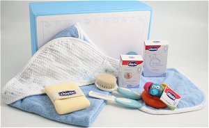 I prodotti Chicco racchiudono in sé tutta la dolcezza per coccolare il bambino, prodotti puri,semplici e sicuri per rispettare la fisiologia della pelle del bambino.Il Cofanetto Cosmetica e Igiene Azzurro contiene: Acqua di Colonia 100 ml, Sapone 125 gr, Accappatoio Quadrato con salviettina in spugna e piquet azzurro e bianco, Guanto Spugna e Spazzola e Pettine azzurro.