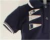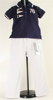 Completo di Dodipetto in puro cotone composto da un pantalone con bottone e cerniera e fettuccia regolabile all'interno del girovita per una migliore vestibilità e una polo manica corta fondo blu con profili bianchi e inserti e ricami sulla parte e la manica destra.
